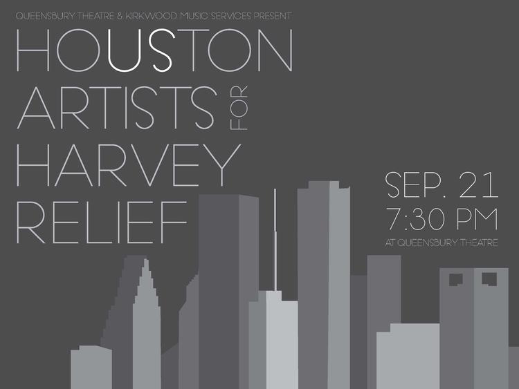 Houston’s Queensbury Theatre and Kirkwood Music Services, along with a dedicated team of local theatre practitioners and artists, present “Houston Artists for Harvey Relief,” a benefit featuring presentations by local performance organizations and groups on September 21, 2017 at 7:30pm at Queensbury Theatre in CityCentre.
